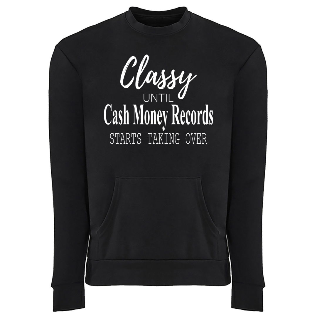 Classy Until Cash Money Records Starts Taking Over. Sis, I know you feel me. No matter how poised and classy you are, when this song comes on, it's over. Make a statement with this pocket sweatshirt. Yes! It's a sweatshirt with pockets and no hood!