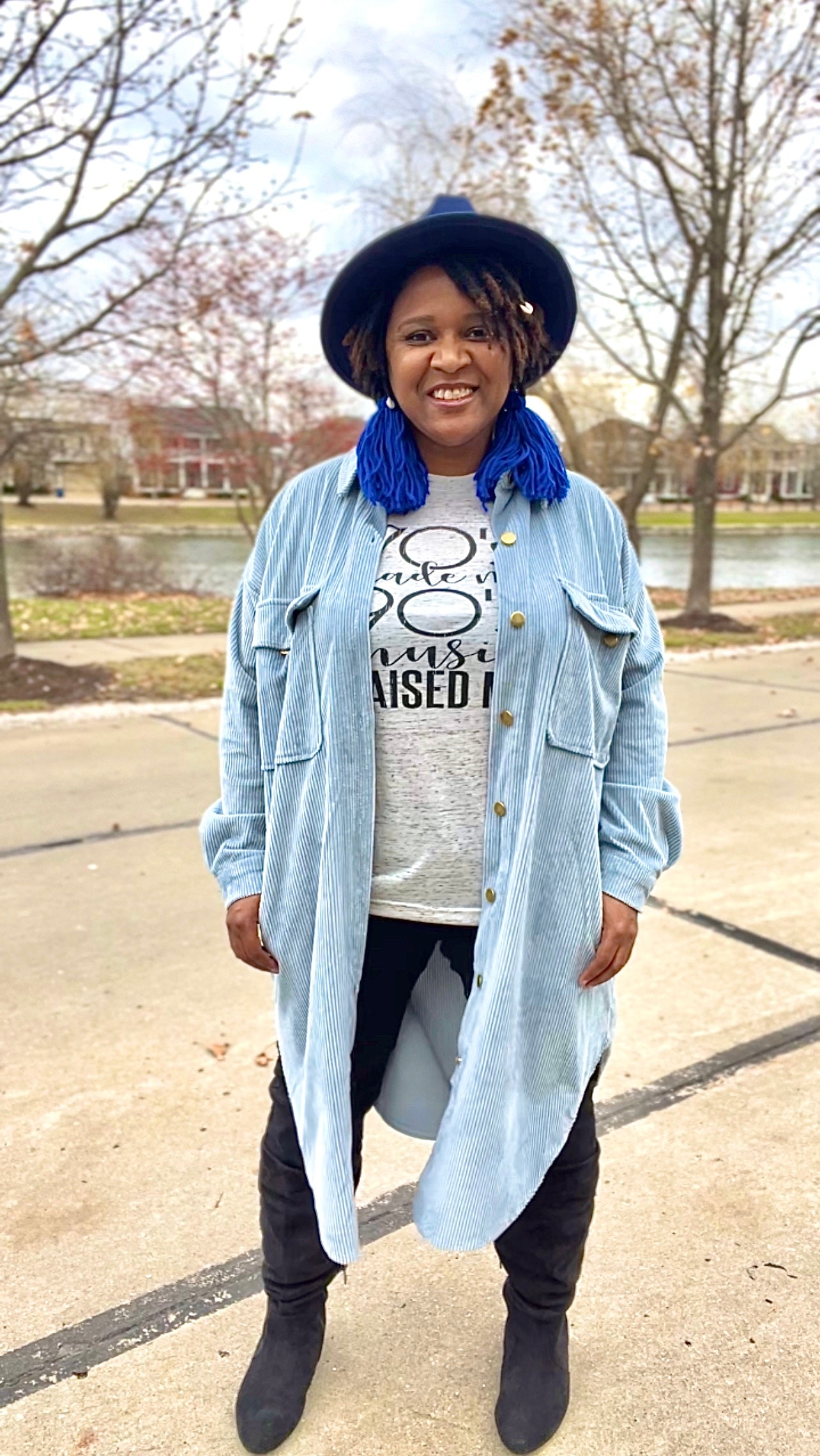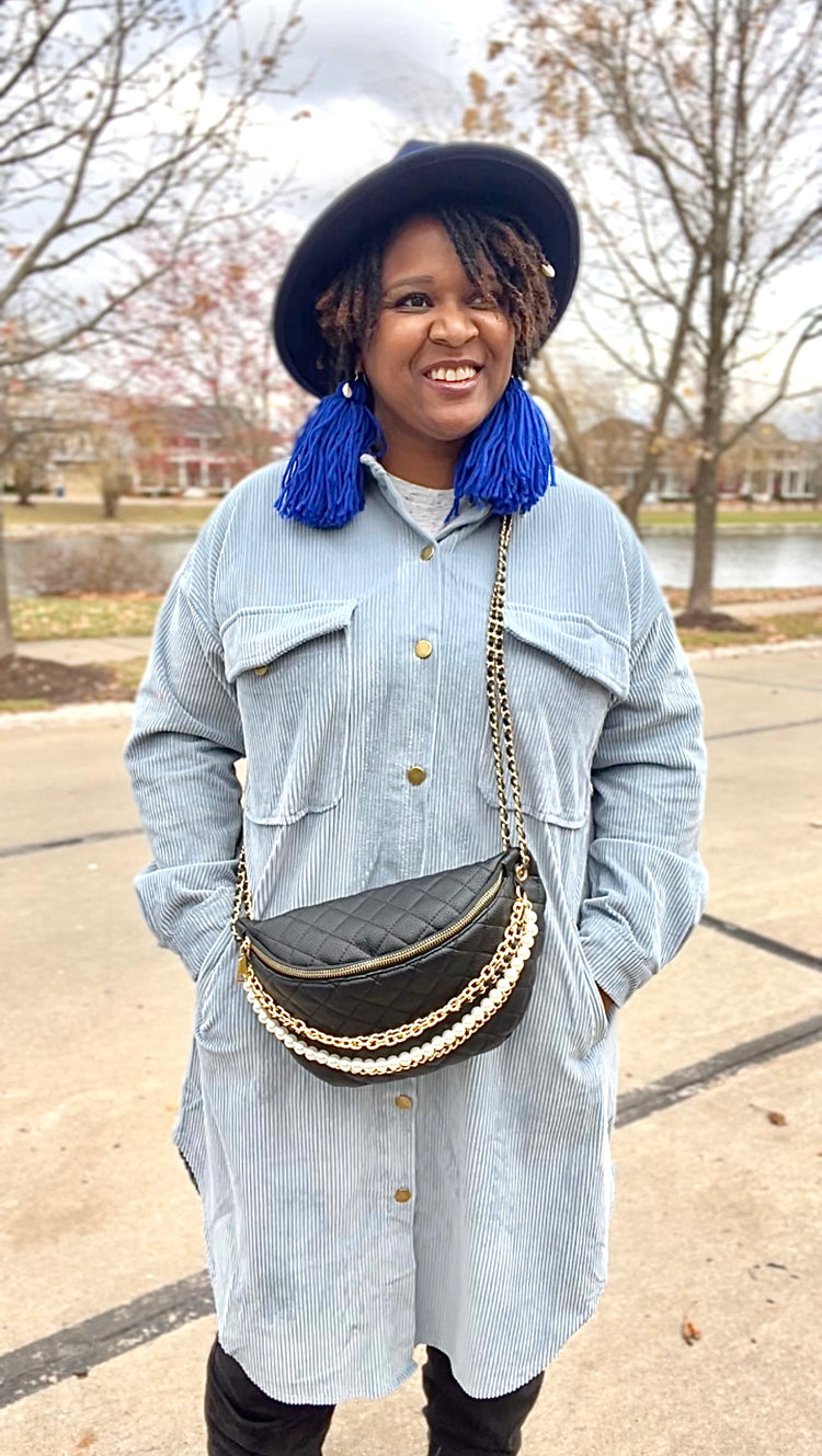 This long, corduroy button down shacket (shirt jacket) is super cute to style with leggings or jeans. This shacket has a medium weight. It will have you cute and warm at the same time. It has two side pockets, as well as, two chest pockets.