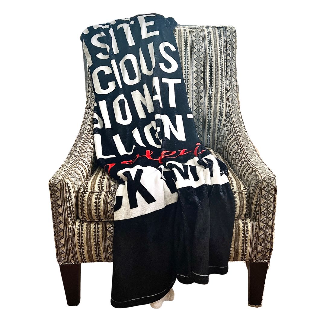 Our Traits of a Black Woman Throw Blanket celebrates the remarkable qualities that make Black women stand out. The blanket features the words "Regal, Resilient, Exquisite, Tenacious, Passionate, Intelligent, Unapologetic Black Woman," as a tribute to the incredible strength and beauty of Black women.