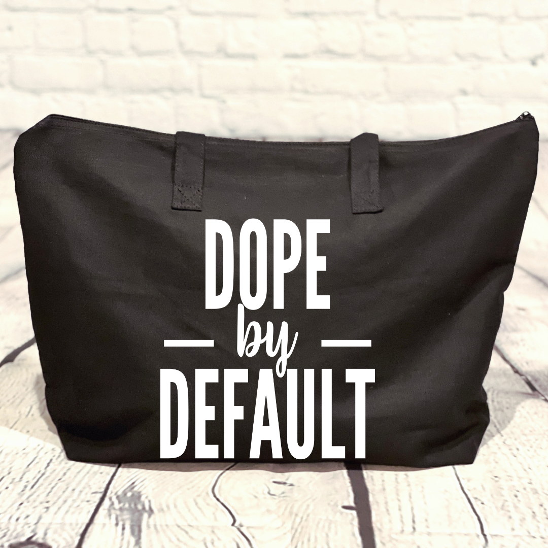 Love a good tote bag? Have you seen our "Dope by Default" Zippered Canvas Tote Bag?