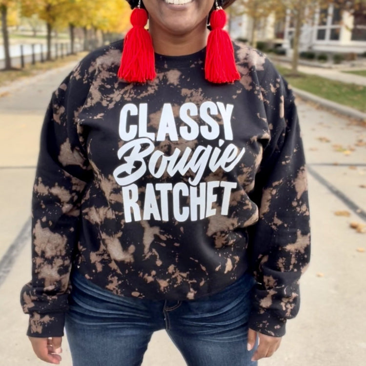 Classy. Bougie. Ratchet. It’s all about balance, sis!! This super cute bleached sweatshirt is sure to get you plenty of head turns and compliments.