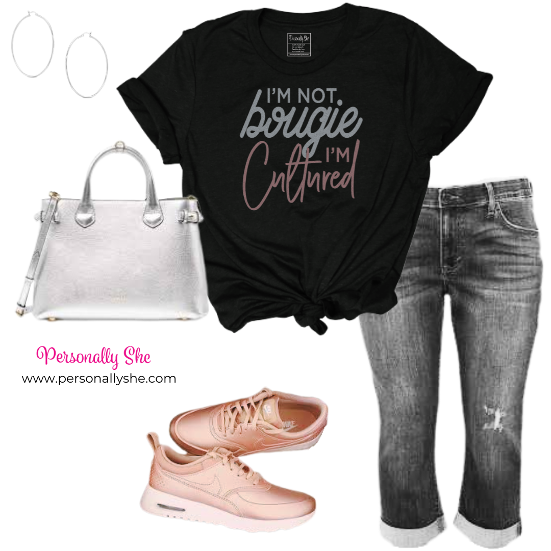 Personally She is THE place for graphic tees that speak to the bougie/hood, educated, Black girl. Whether you're classy until cash money records starts taking over, HBCU educated, team petty, or you rep the toughest hood there is, motherhood; we've got a tee that speaks to your soul.