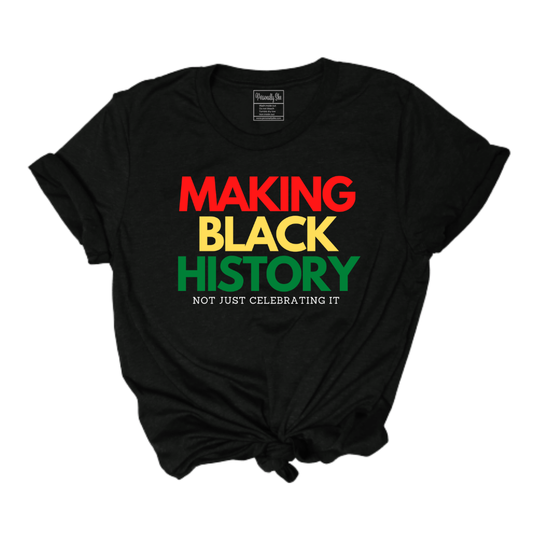 Calling all history makers! This Making Black History tee is for you. This t-shirt is a call to action, a reminder to do more than just commemorate our past. It's a declaration that we are not just content to sit back and celebrate the successes of our ancestors, but that we are committed to making history ourselves.
